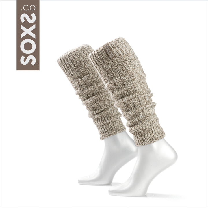 De wollen beenwarmers van SOXS zijn gemaakt van 60% Nieuw-Zeelands schapenwol en 40% elastische polyamide.