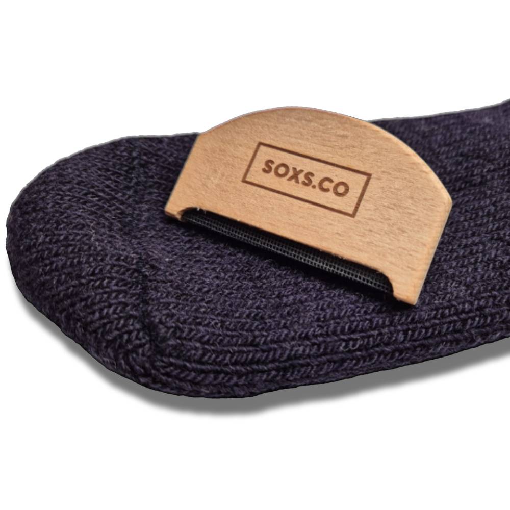 De nieuwe wolkam van SOXS is gemaakt van hout en geperforeerd staal en verwijdert effectief pluisjes en knopen van wollen kledingstukken.