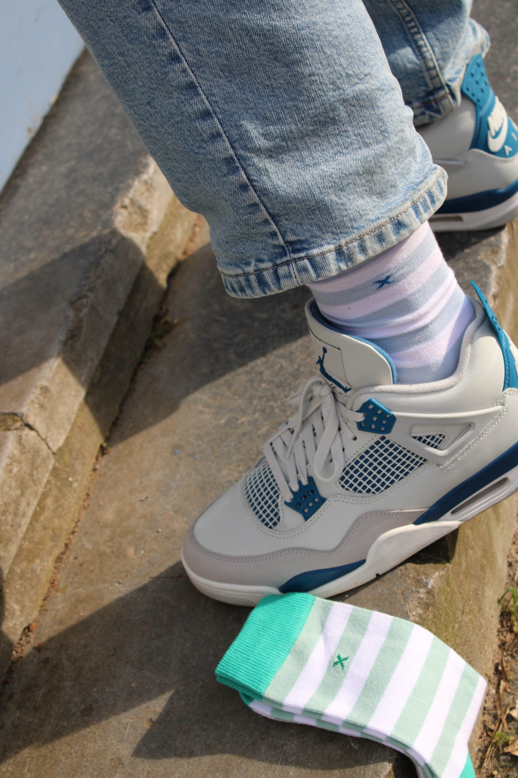 Trend sokken - stripes - medium - cotton - iced aqua - 42-46